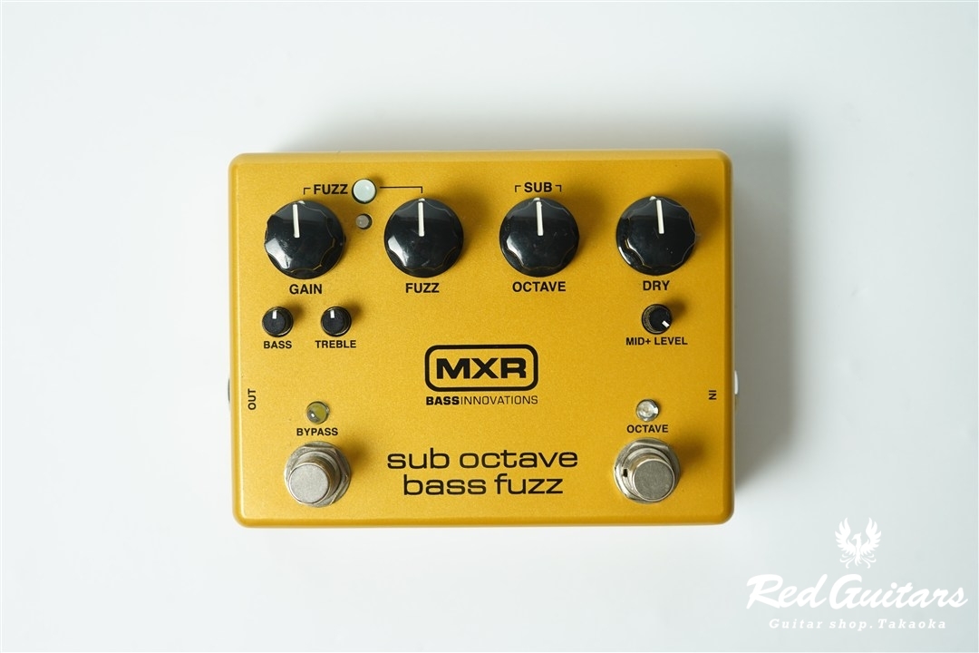 FUZZ, GAIN, SUB OCTAVE, DRY, BASS, TREBLE, MID+LEVEL, BYPASS, OCTAVE